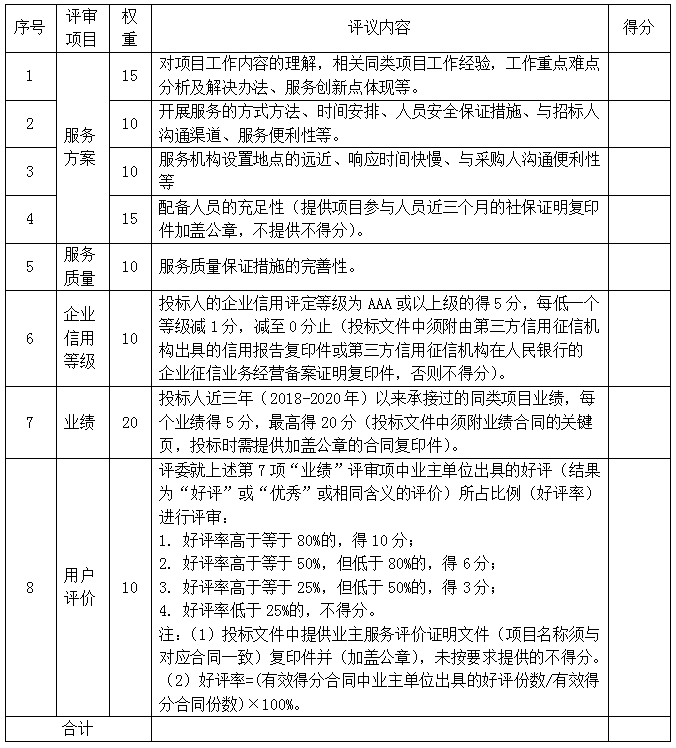1、项目以综合评审的方式开展采购评审工作,综合得分最高者为中标单位。