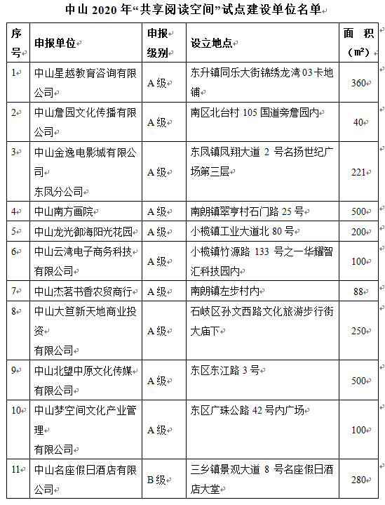 为了进一步深化文化体制改革,充分调动民间社会力量参与公共文化建设的积极性,丰富文化旅游休闲场馆的服务内涵,提升城市阅读空间服务水平和“书香中山”建设水平,中山市于2019年12月印发《中山市“共享阅读空间”试点建设方案》,推动辖区内具备条件的社会力量、群团组织等单位参与“共享阅读空间”试点建设。