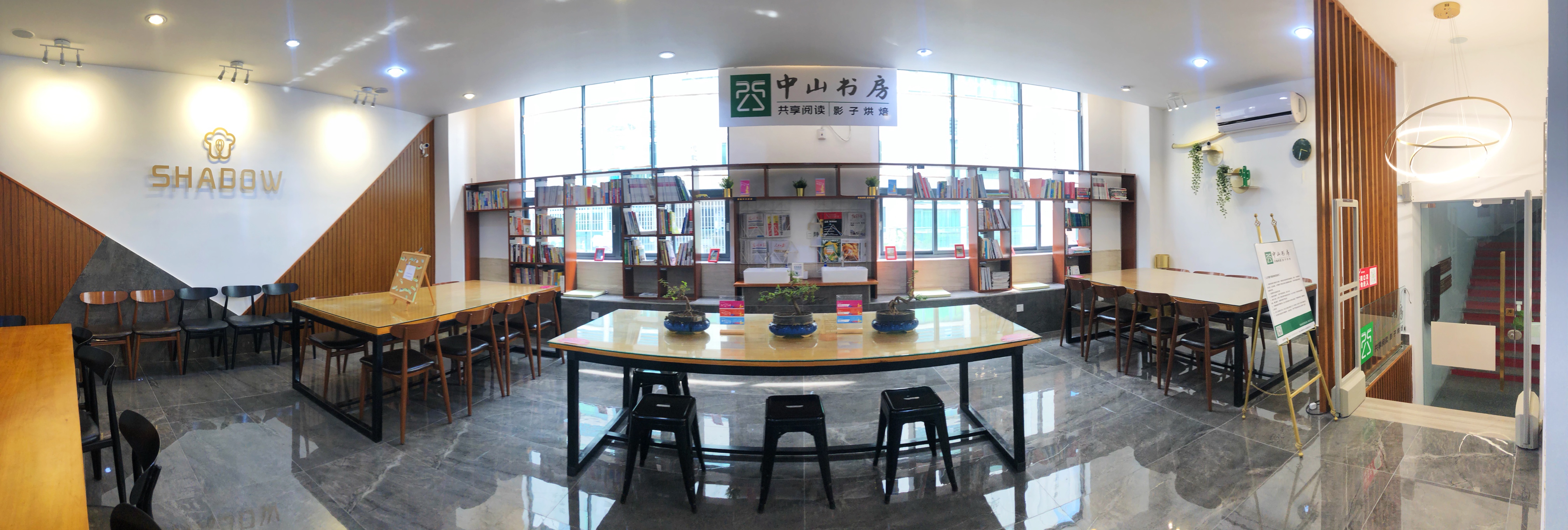 影子烘焙共享阅读空间位于中山市南头镇中心地带(建设路25号首层之四),是南头最优的生活圈。占地面积70平方米,目前藏书量达1000多册,书本内容涵盖人文、自然、社会、艺术、建筑、饮食文化、绘本、设计、儿童和摄影等等。为努力打造“一空间一特色”,本书屋主要以美食书籍为主,包含饮食历史、饮食随笔、食材料理、蔬菜素食、健康饮食、各国料理、面包、烘焙、甜点、中国菜、茶艺、烹饪常识等饮食文化书籍。